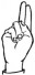 На ћирилици написано КОСТАДИН ВЕЛИЧКОВИЋ састоји се из 18 слова [?]. Исписано ћириличном једноручном азбуком за глувонеме: